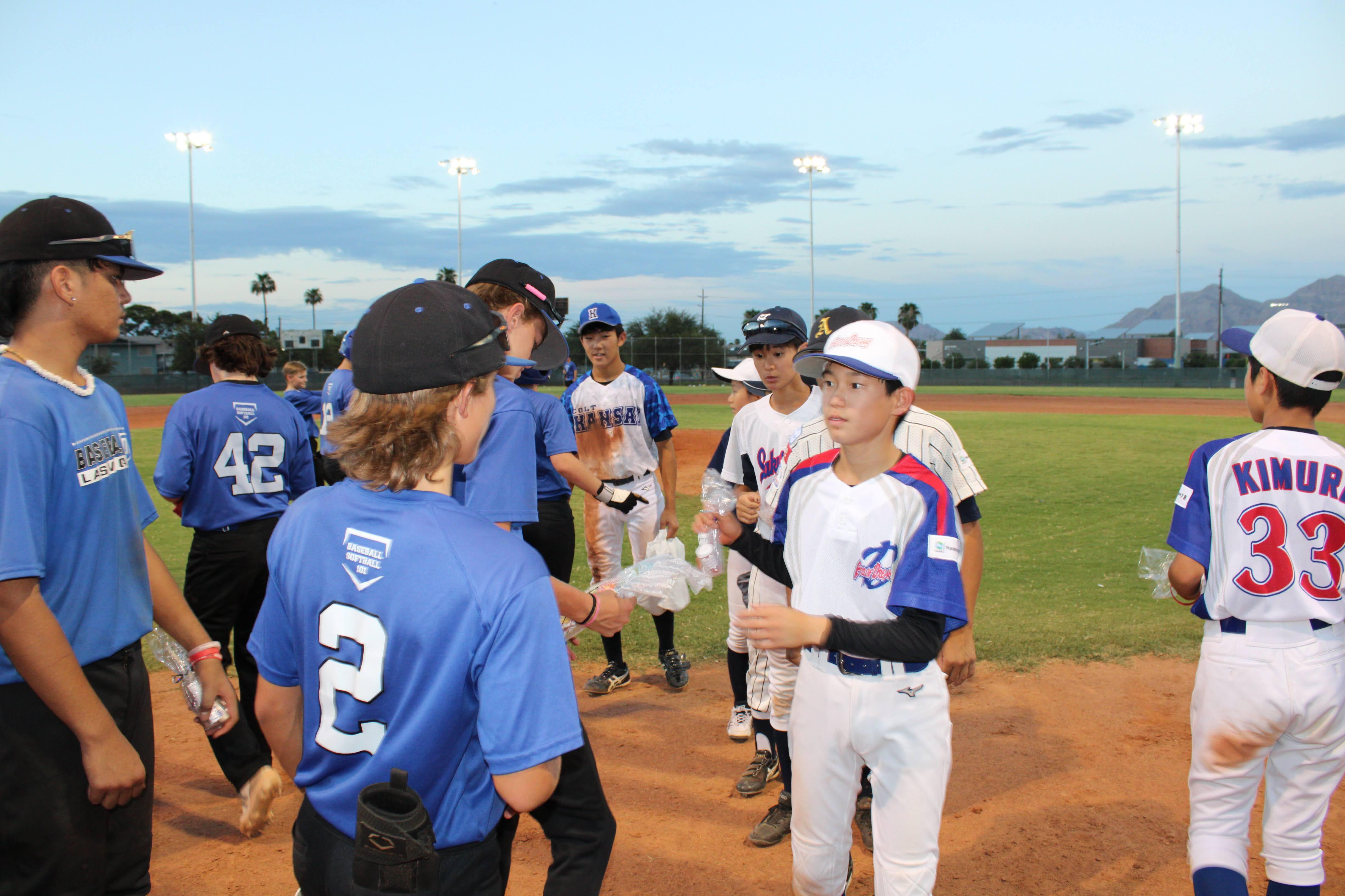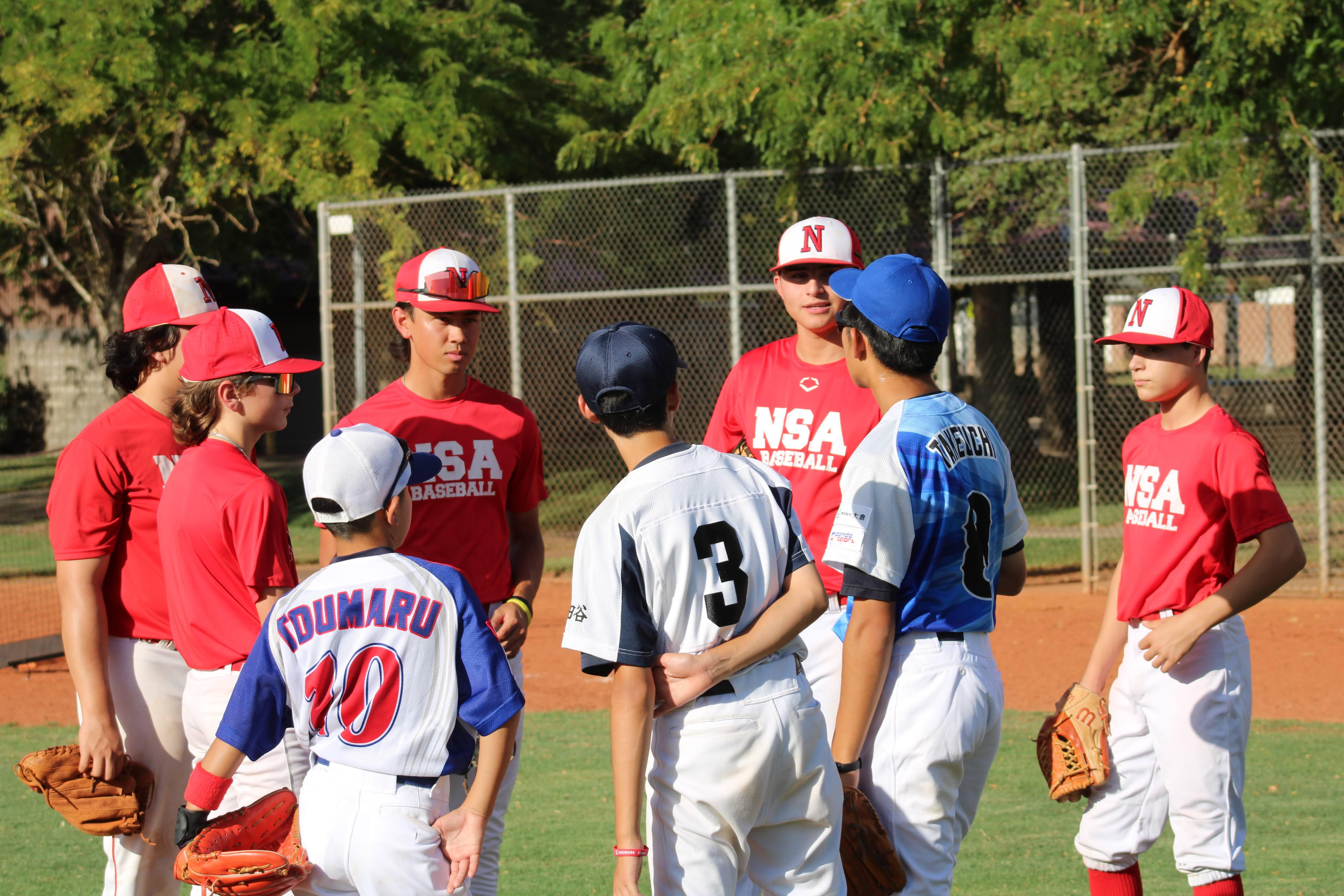 Practice and compete against a Japanese youth baseball team.